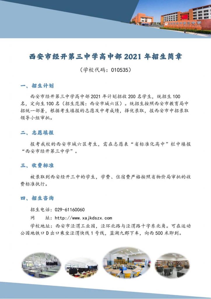西安市经开第三中学高中部2021年招生简章