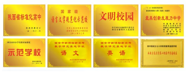学校先后获得“国家级语言文字规范化示范学校”、陕西省学校发展水平“316工程”督导评估优秀学校、“最具创新发展力中学”、雁塔区“文明校园”“平安校园”“绿色校园”“西安市新课标新高考英语、语文教学研究基地学校”、西安市体育(田径、排球)传统学校、陕西师范大学优秀实习基地、“西安建筑科技大学、西安电子科技大学、西安石油大学优质生源基地”“西安市思维性实验学校”“陕西省美育教学改革试验学校”“陕西省科普教育宣传合作单位”“雁塔区2020年中小学校目标管理考核优秀单位”等殊荣。