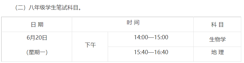 因病休学或其他原因未参加2021年八年级学业水平考试的学生须参加今年八年级学业水平考试。八年级学生因病休学或其他原因未能参加2022年生物学、地理科目考试的,须在下一年报考生物学、地理科目考试。