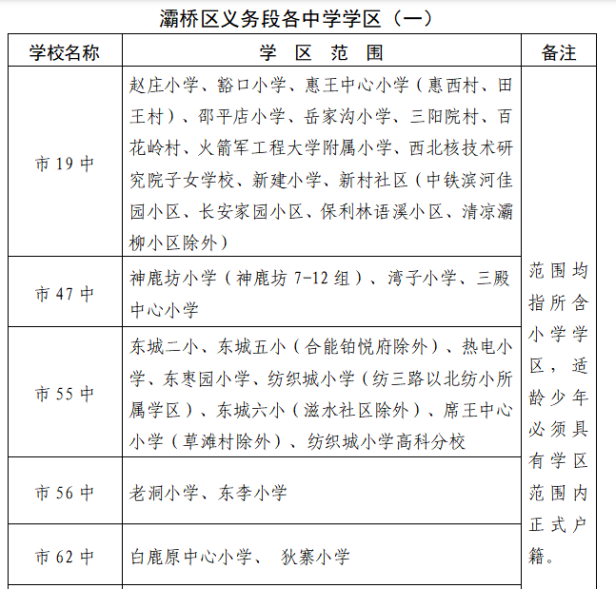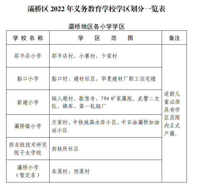 2022年西安灞桥区义务教育公办学校学区划分公布
