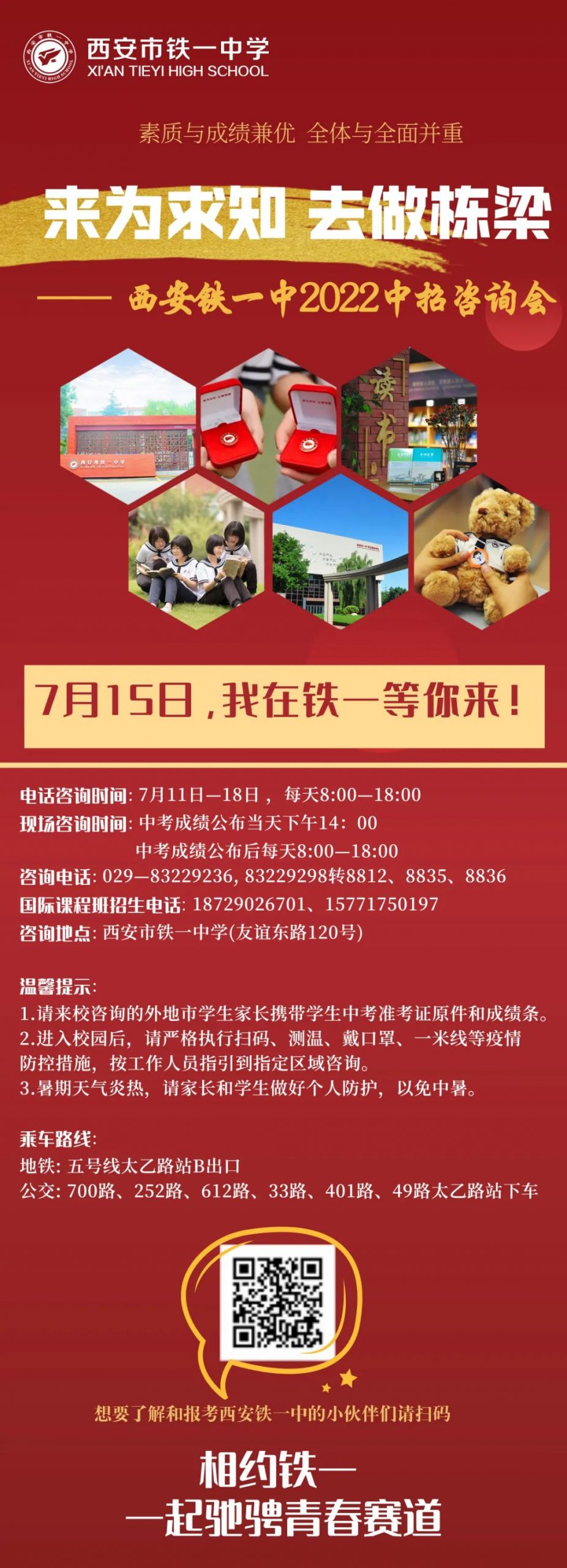 7月15日,我在铁一待你 | 西安市铁一中学2022中招咨询来啦!
