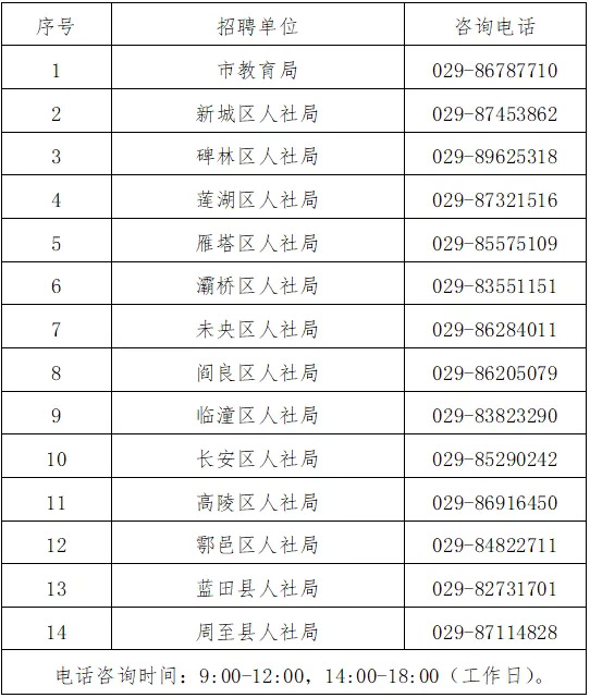 招聘岗位表及考试大纲具体可登录西安市人社局门户网站或西安人事考试网查阅招聘公告。