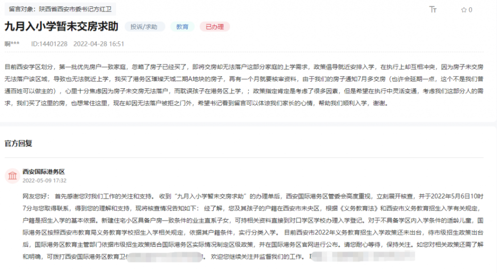 目前西安学区划分,第一批优先房户一致家庭,忽略了房子已经买了,即将交房却无法落户这部分家庭的上学需求,政策倡导就近安排入学,在执行上却互相冲突,因为房子未交房无法落户该区域,导致也无法就近上学,该如何解决?
