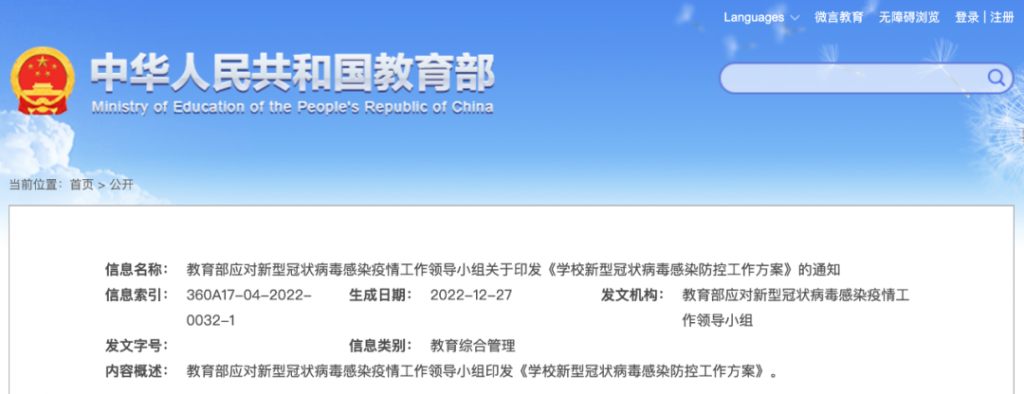 为贯彻落实国务院联防联控机制综合组印发的《关于对新型冠状病毒感染实施“乙类乙管”的总体方案》,我部研制了《学校新型冠状病毒感染防控工作方案》,并经国务院联防联控机制综合组同意,现将该方案印发给你们,请遵照执行。