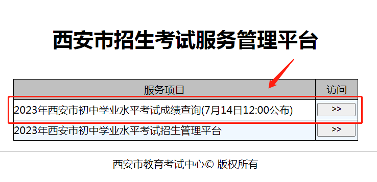 7月14日中午12时起,考生可登录西安市教育局官网(http://edu.xa.gov.cn),点击进入中招管理系统(http://222.91.162.190:7070/),输入准考证号和身份证号查询成绩;