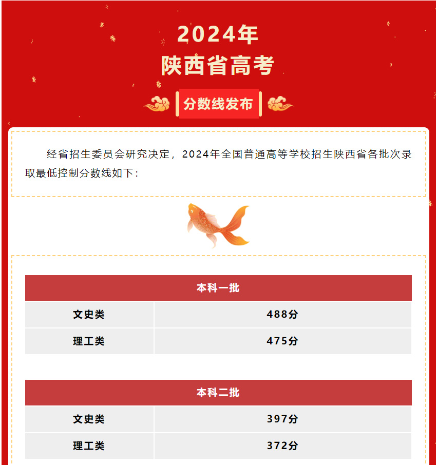 2024年陕西高考录取分数线:一本文史类488分,理工类475分!