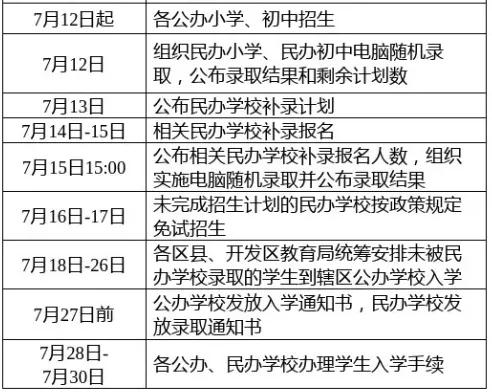 7月12日起,公民同招启动。民办学校进行“超额”电脑随机录取,录取结束后,招生平台通过其微信公众号或手机短信告知学生家长录取结果。