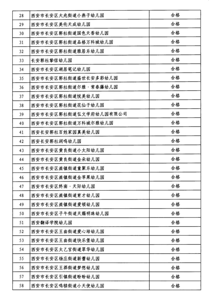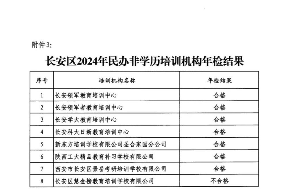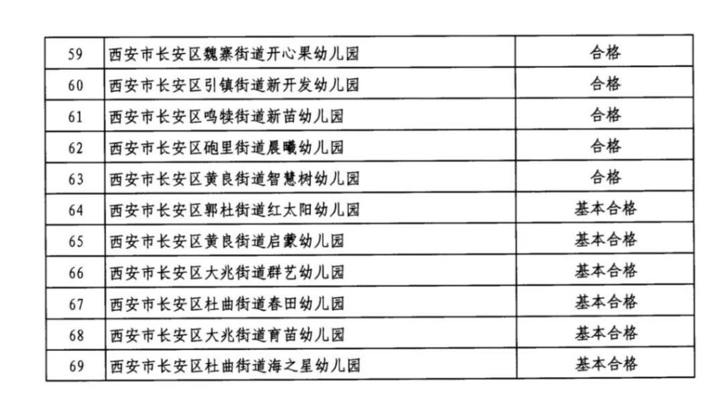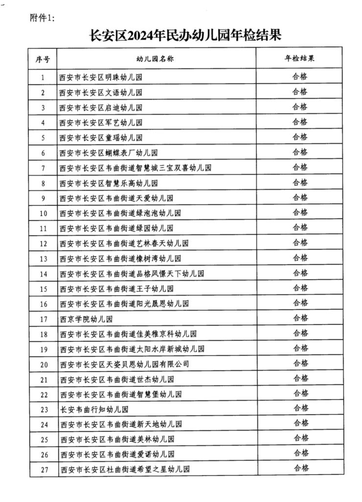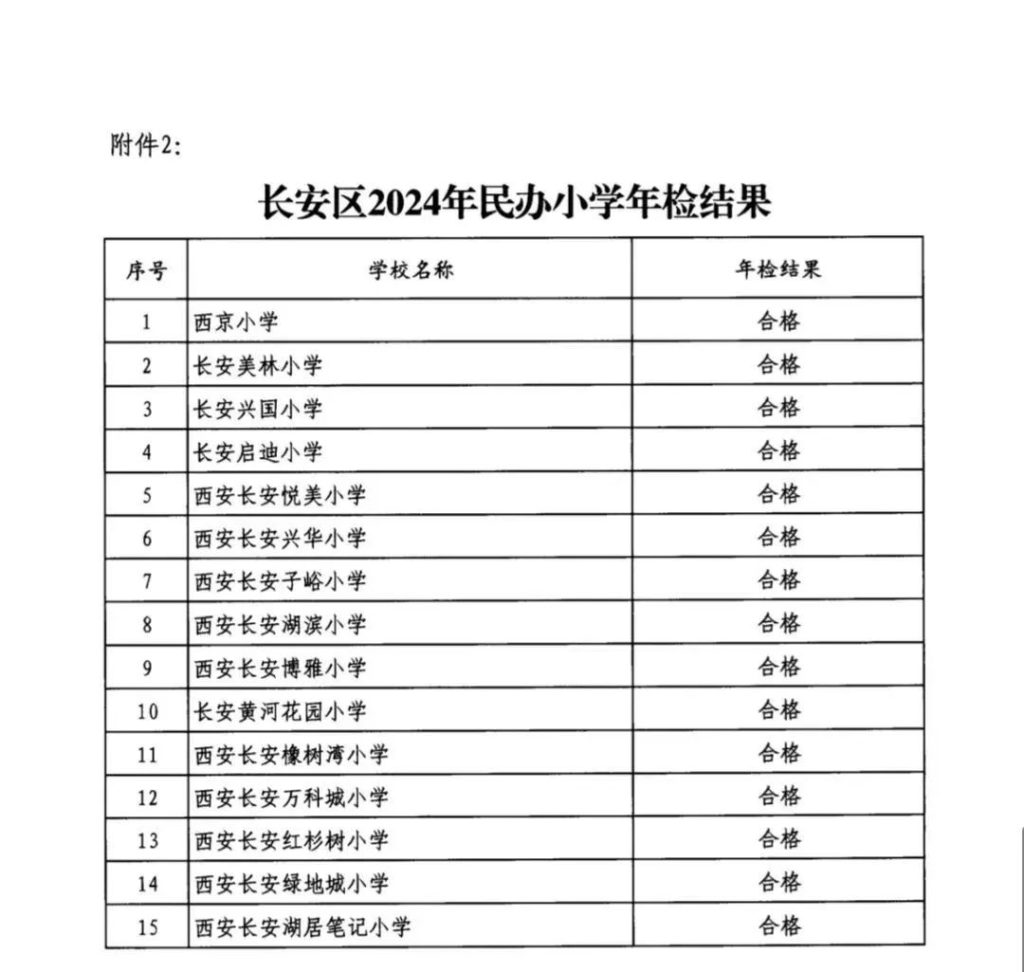 西安市长安区教育局关于2024年民办幼儿园、小学、非学历培训机构年检结果公示