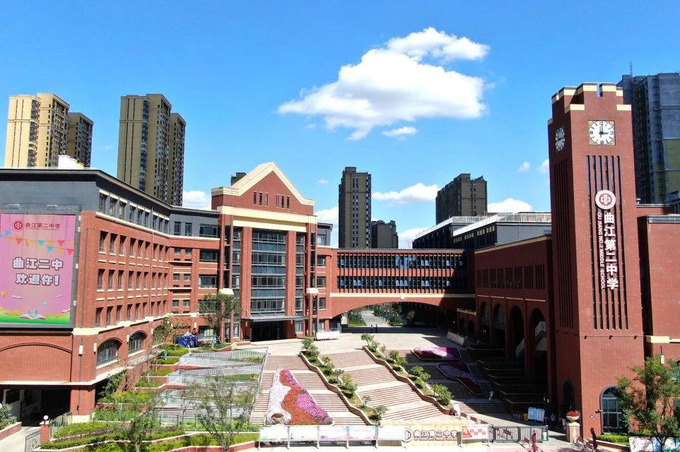 曲江二中校园建筑面积91000平方米,建筑风格独特,校园环境宜人,布局合理。