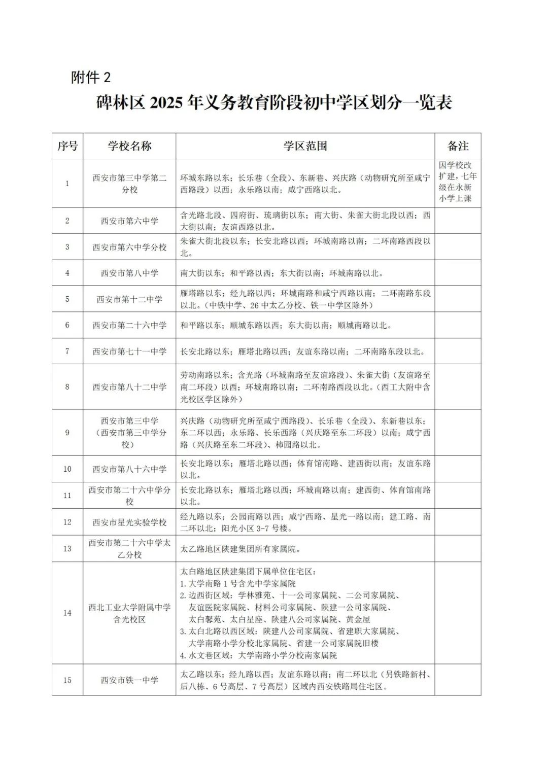 西安市新城区教育局2025年义务教育学校学区划分方案