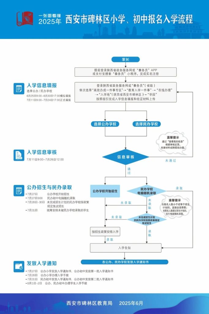 一图看懂 | 2025年西安市碑林区小学、初中报名入学流程