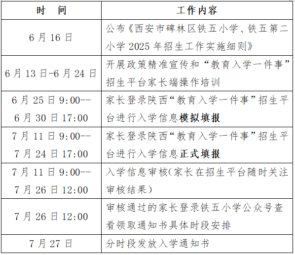 信息审核通过的,7月26日12时以后,登录铁五小学公众号查看领取通知书具体时段安排。7月27日分时段发放入学通知书。不按时领取视为自动放弃,该学位将不予保留。
