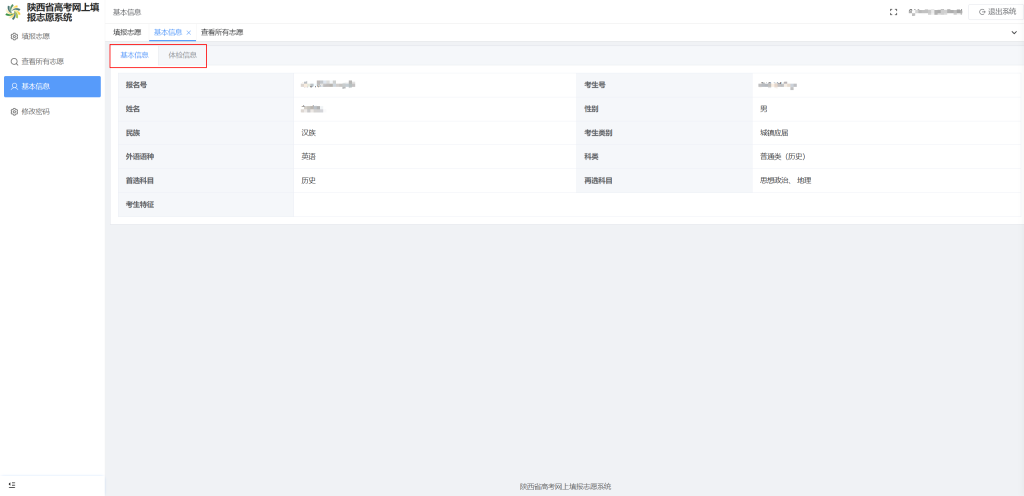 2.点击“基本信息”查看个人基本信息以及体检信息,了解自身受限的院校和专业。