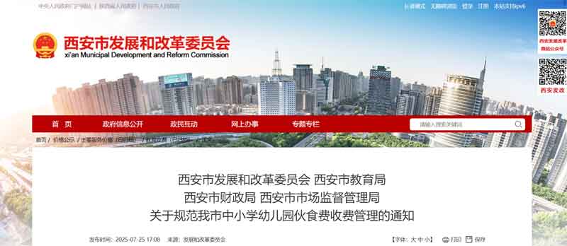 为进一步加强我市中小学、幼儿园伙食费管理,规范学校伙食费收费行为,依据陕西省教育厅等九部门印发的《陕西省中小学、幼儿园集中用餐管理办法(试行)》(陕教规范〔2025〕1号)、陕西省教育厅等六部门印发的《陕西省农村义务教育学生营养改善计划管理办法》(陕教规范〔2023〕4号)及《关于进一步加强中小学校膳食经费管理工作的通知》等相关规定,现就有关事项通知如下: