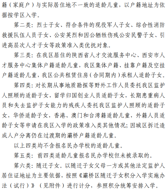 (3)集体户籍、挂户、空户:其户籍不作为就近入学的依据,由浐灞国际港教育局统筹安排入学;