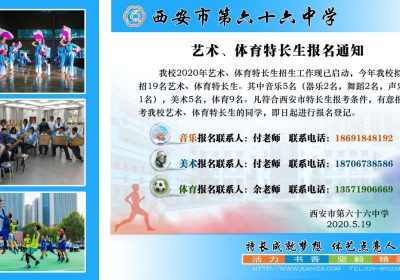我校2020年艺术、体育特长生招生工作现已启动,今年我校拟招19名艺术、体育特长生。其中音乐5名(器乐2名,舞蹈2名,声乐1名),美术5名,体育9名。凡符合西安市特长生报考条件,有…