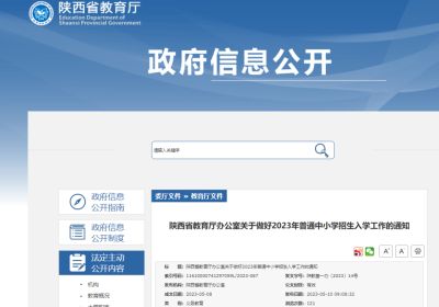 西安市教育局关于做好2023年义务教育招生入学工作的通知 各区县教育局,西咸新区教育体育局,各开发区教育局,各直属中小学: 为深入贯彻落实党的二十大精神,按照《教育部办公厅关于做好…
